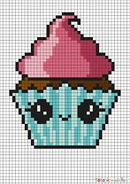 Feuille De Pixels À Imprimer : Quadrillage Pixel Art Vierge Gamboahinestrosa - Un modèle de pixel art à imprimer gratuitement afin de créer un cupcake coloré en pixel art.