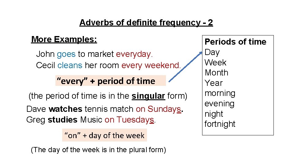 Focusing Adverbs And Adverbs Of Time from image.slidesharecdn.com Adverbs of time tell us at what time (when) or for how long (duration) something happens or is the case. Secondly, to quote an example, when i say something like i watched tv last night, does last night' here represent a specific point in time, or does it represent a specific duration of time, or both? However, we can sometimes place adverbs of time at the beginning of the sentence to put an extra emphasis on the time or duration being described. The position of a typical adverb of time within a sentence varies according to the relevance the speaker wants to give to the time element. It tells us when an action happened besides how long, how often. Each sentence contains an example of an adverb of time; The adverbs of time tell us when an action takes time, its duration and frequency. Today, yesterday, later, now, last year.